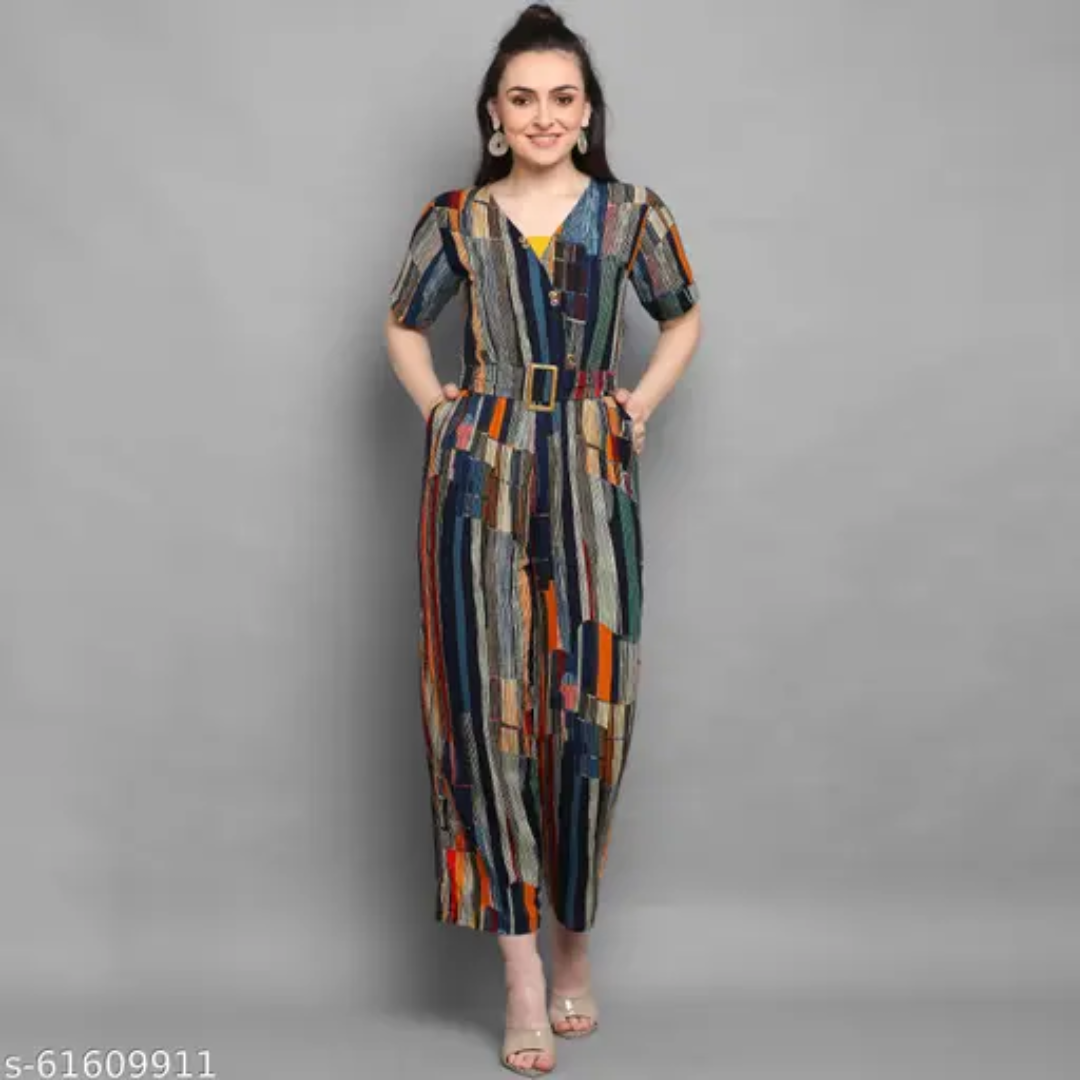 If you want to make yourself and wardrobe stunning then you should try this jumpsuit. It is a jump suit from western categories. It is crafted from pure Rayon fabric with Love. The vivacious look you are experiencing is a reflection of its pattern and solid color. You can wear it in any season because of its Design and type of fabric it is made from. Pair it with loafers and accessories and look effortlessly chick and fashionable